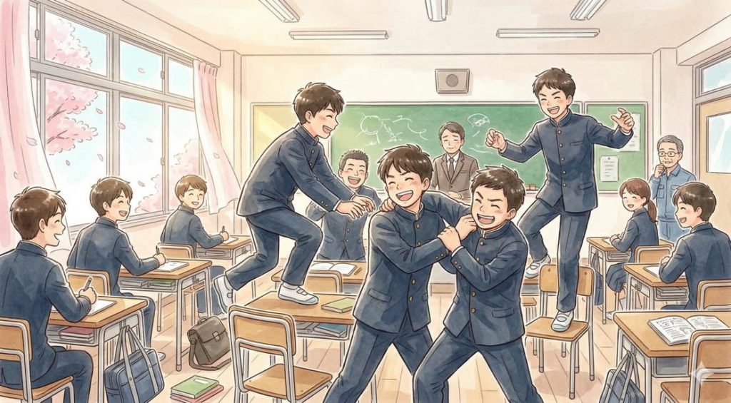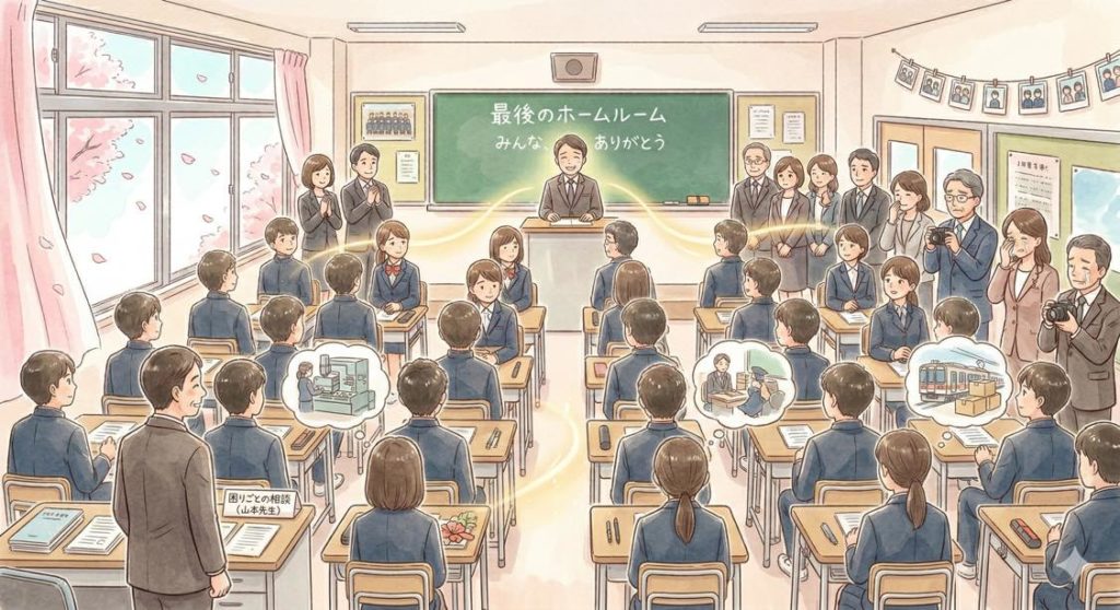 卒業式後、生徒たちは全員教室に戻って、最後のホームルーム。