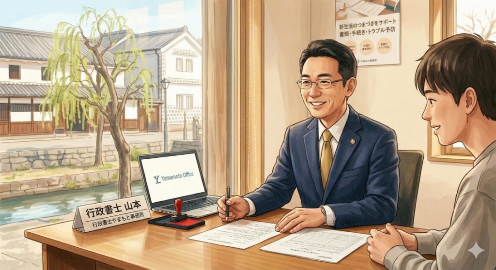 倉敷市の行政書士として、新生活のスタートでつまずきやすい「書類・手続き・トラブル予防」を、わかりやすくサポートいたします。