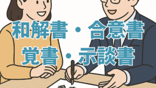 和解書・合意書・覚書・示談書 和解書・合意書・覚書・示談書はどう違う?行政書士が分かりやすく解説 和解書・合意書・覚書・示談書の違いを行政書士が分かりやすく解説。口約束のリスクや使い分けのポイントを具体例で紹介。倉敷・岡山を中心に全国対応しています。 2025.09.10 和解書・合意書・覚書・示談書