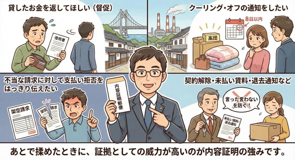 あとで揉めたときに、証拠としての威力が高いのが内容証明の強みです。
