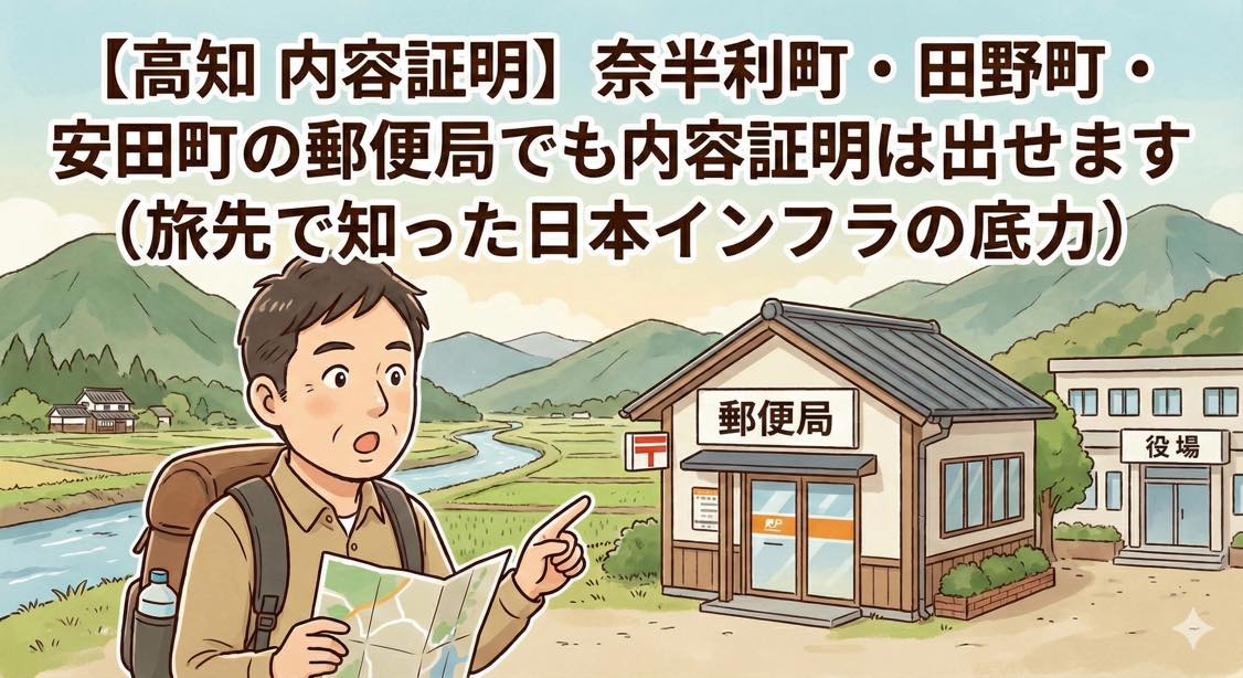 【高知県】奈半利町・田野町・安田町の郵便局でも内容証明郵便は出せます(旅先で知った日本インフラの底力)