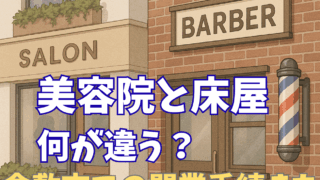 美容院と床屋(理容院)の違いを法律・サービス内容から分かりやすく解説。倉敷市で開業する場合に必要な保健所への届出や手続きの流れも行政書士が丁寧にまとめています。