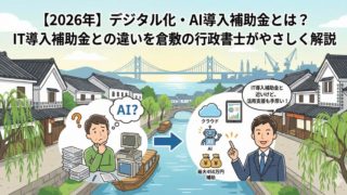 補助金 【2026年】デジタル化・AI導入補助金とは?IT導入補助金との違いを倉敷の行政書士がやさしく解説 2026年開始見込みの「デジタル化・AI導入補助金」をやさしく解説。IT導入補助金との違い、5つの枠、補助率・対象経費、請求書受領サービス活用まで倉敷の行政書士が整理。 2026.01.02 補助金
