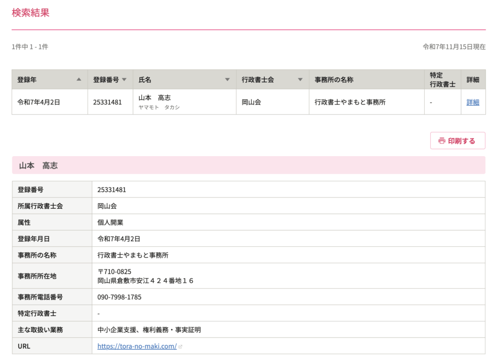 公式データベースに載っているということは、正式な行政書士として登録されている証明でもありますね。