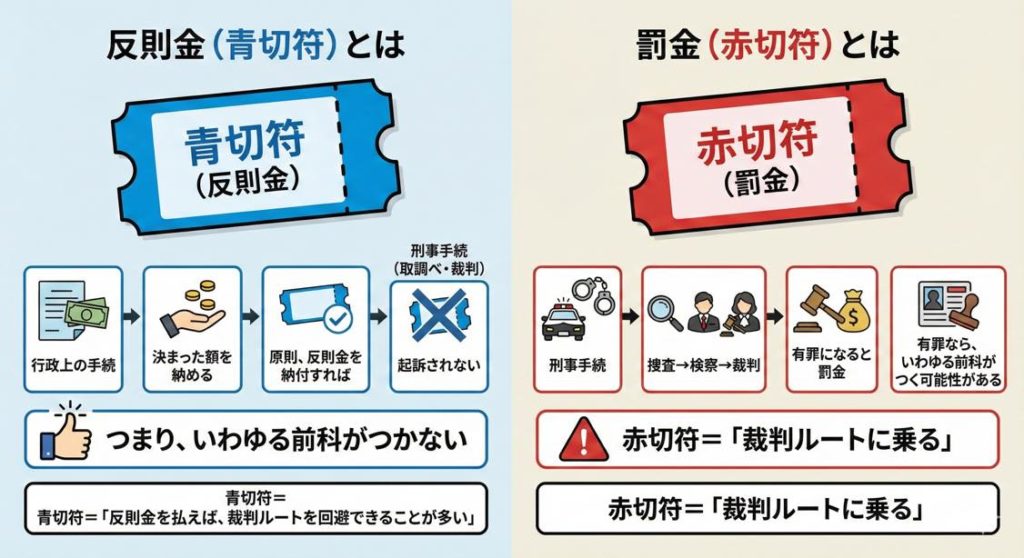 【最重要】「反則金」と「罰金」の違い:いちばん大きいのは“前科”の有無