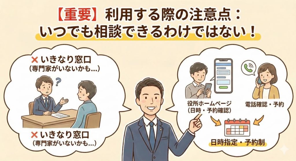 幅広い分野の相談窓口が用意されている役所ですが、1点だけ注意していただきたいことがあります。