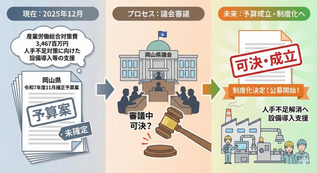 ということで 今回は、岡山県の令和7年度11月補正予算資料に見える「人手不足対策設備導入」への期待について速報的にお伝えしました。