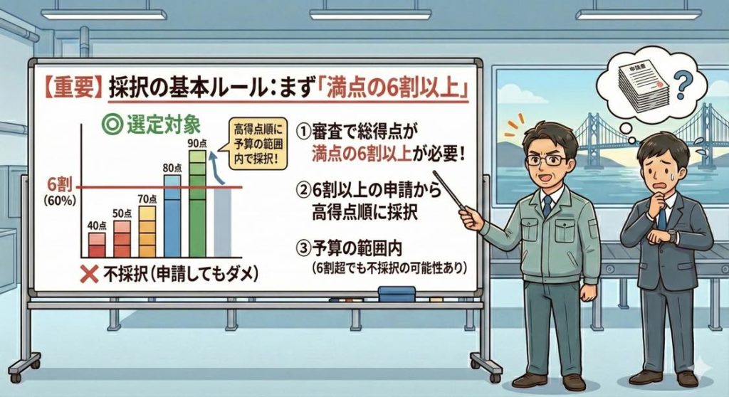 採択の基本ルール:まず“満点の6割以上”