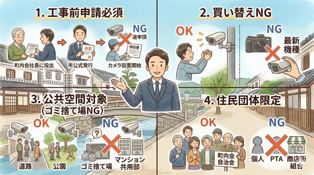 要注意!倉敷市の防犯カメラ補助金を受け取るための「絶対ルール」