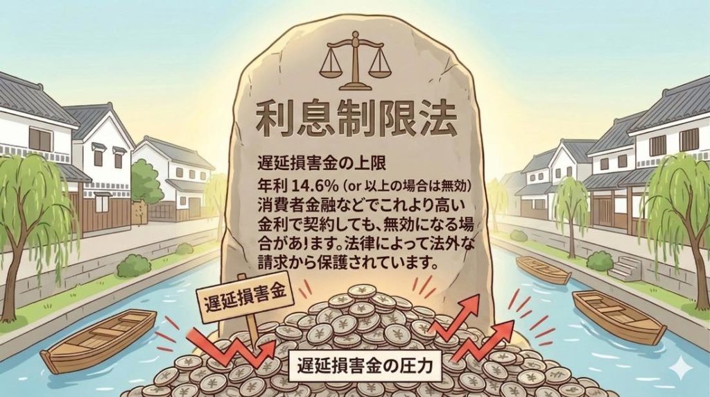 逆に言うと、例えば、遅延損害金30%や遅延損害金40%といったように、14.6%を大きく超える利率を設定すると法律上問題になる可能性があります。