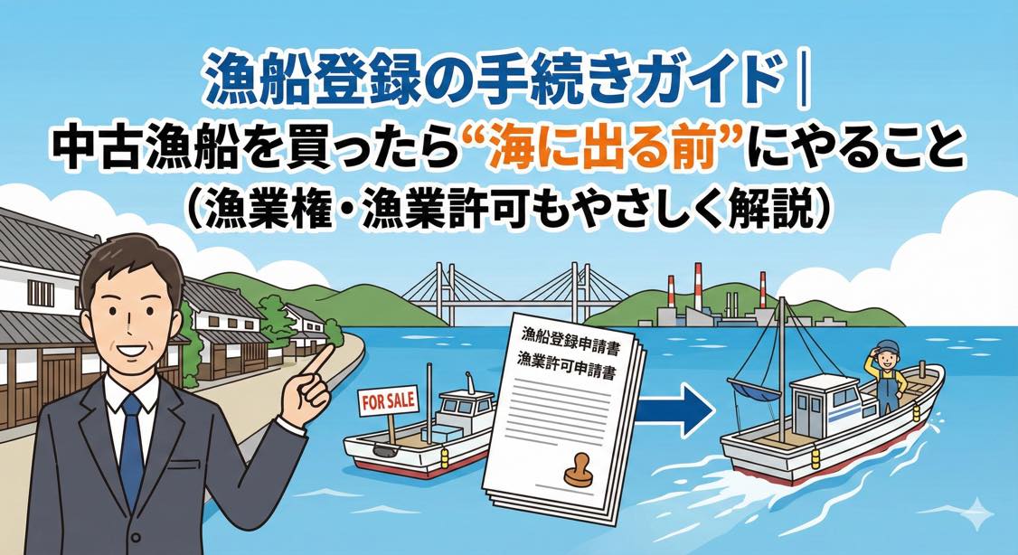 ちなみに中古漁船は、前所有者の漁船登録が譲渡で失効するため、原則として改めて登録が必要です。
