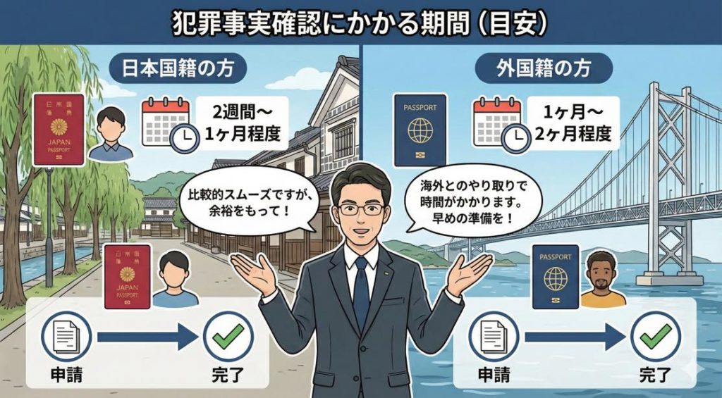 • 日本国籍の方:申請から2週間〜1ヶ月程度