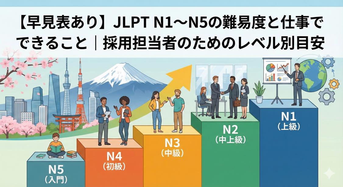 【採用担当者・外国人材必見】N1〜N5ってどれくらい話せるの?日本語能力試験(JLPT)のレベル別目安と「特定技能」「技人国」との関係
